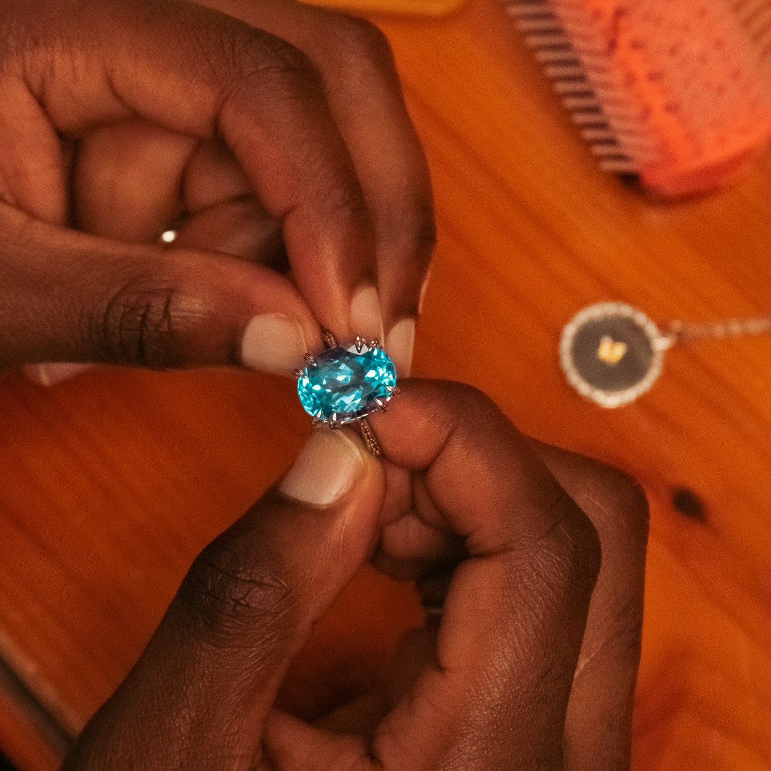 She works closely with each couple to create a ring that is as unique as their love story. From the selection of gemstones to the intricate design details, every element of the ring is carefully considered to tell the couple's story in a meaningful way.
