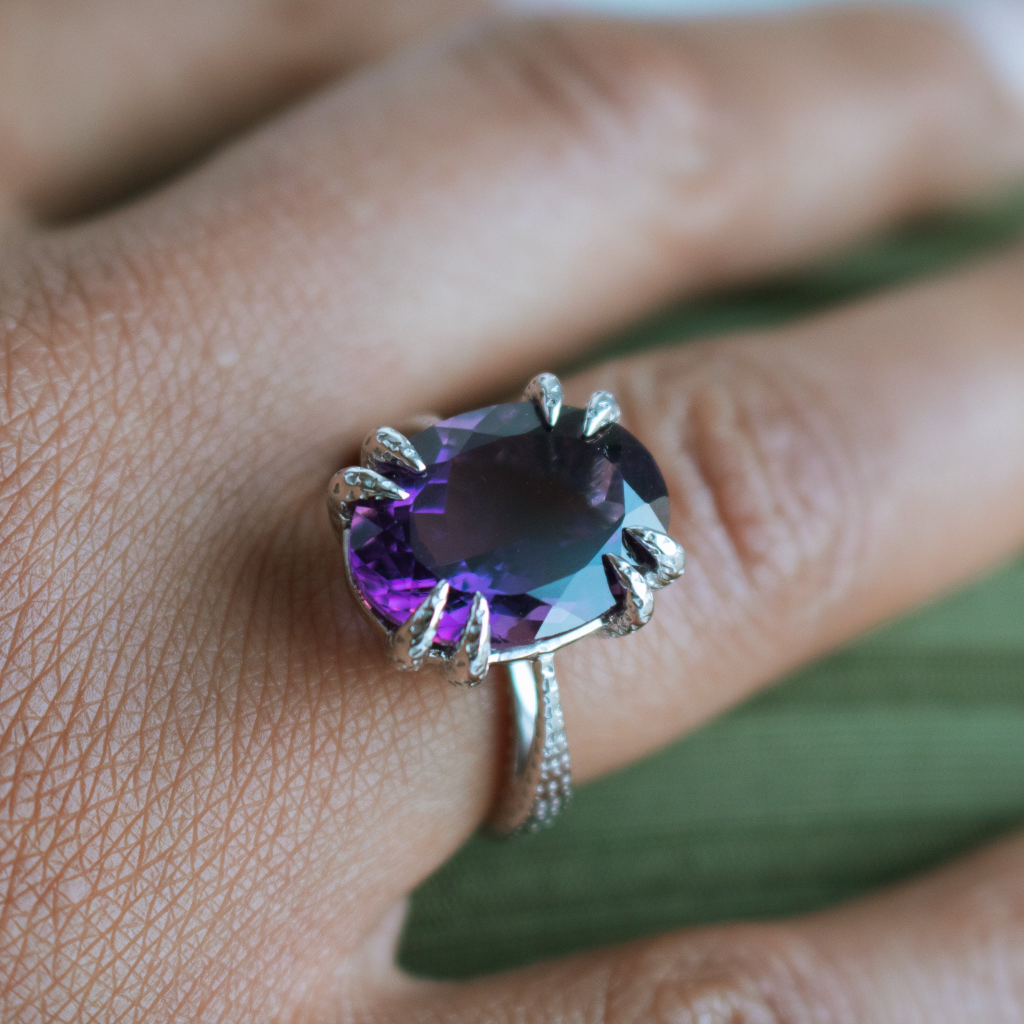 The gemstone Amethyst, believed to embody a calming and clarifying energy, beautifully complements the theme of nurturing one's scalp. Those who wear this ring are encouraged to embrace the power of self-care, pampering their scalps with the attention and nourishment they deserve. Just as Amethyst promotes tranquility, so too can a healthy scalp provide a sense of balance and well-being.