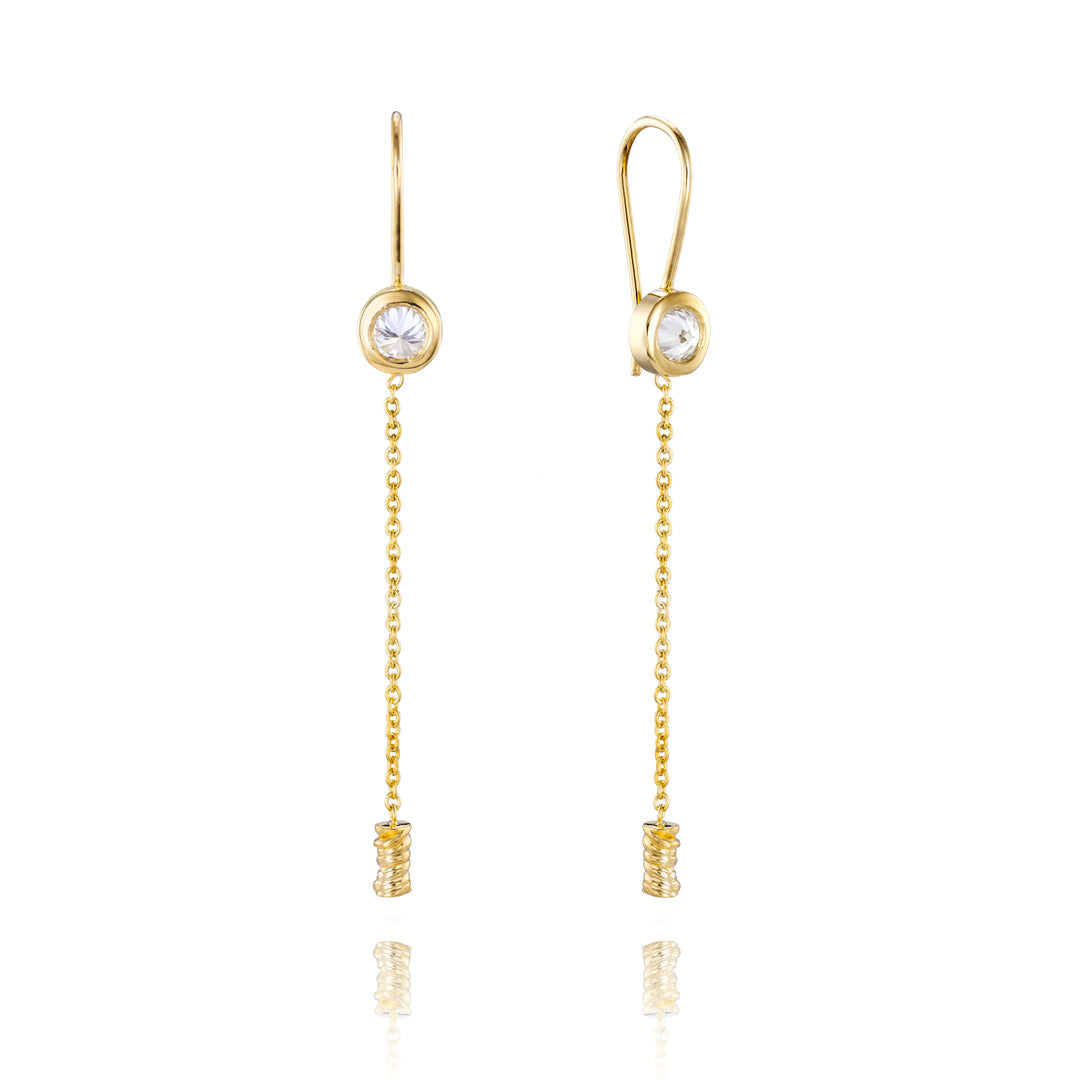 The Queen's Light Earrings are stunning 18ct gold dangle dancing earrings that are perfect for any occasion. These earrings are inspired by the radiant light of queens, and they are sure to turn heads wherever you go.